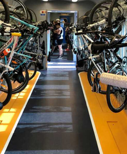 Nel corso del tempo abbiamo capito che la promozione della mobilità ciclistica è direttamente proporzionale al rafforzamento della intermodalità. Per allargare il flusso di cicloturisti ma anche per rendere il loro viaggio più agevole, è importante combinare l’uso della bicicletta con altri mezzi. Quindi abbiamo sviluppato varie modalità: bicibus, bicibarca e bicitreno. Tutte soluzioni di trasporto sostenibili, mantenendo quindi in primo piano la sostenibilità ambientale. Il tema di questi progetti è anche quello di promuovere l’identità di un territorio, attraverso il collegamento con l’entroterra proprio per valorizzare le caratteristiche anche socio-culturali, artistiche della regione.