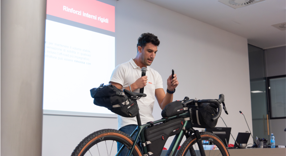 «Nel pensare a una nuova gamma di prodotti – racconta durante la presentazione Denis Vaccari, Product Developer di Givi – ci siamo posti questi tre punti: protezione, affidabilità e intelligenza (praticità, ndr). Il primo obiettivo era quello di avere una linea di alta gamma a livello tecnico, ma senza escludere l’estetica e la cura del dettaglio. Una borsa per il bikepacking deve essere impermeabile, funzionale ma allo stesso tempo avere anche un’estetica ed essere di pregevole fattura. Tatto e vista sono due sensi dei quali bisogna tenere conto».