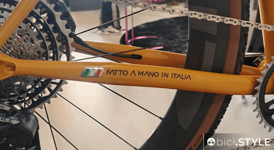 Dall’altro lato della sala vediamo invece Siena, una bici da strada costruita secondo la lavorazione più tradizionale e artigianale che ci sia, quella dell’acciaio. Gli altri due modelli sono Cortina e Matera, le versioni gravel di, rispettivamente, Modena e Matera. Tutti nomi italiani dunque, come anche i precedenti modelli Roma e Portofino, ed è tutt’altro che un caso. Officine Battaglin produce tutto in Italia, e vende (quasi) tutto all’estero.
