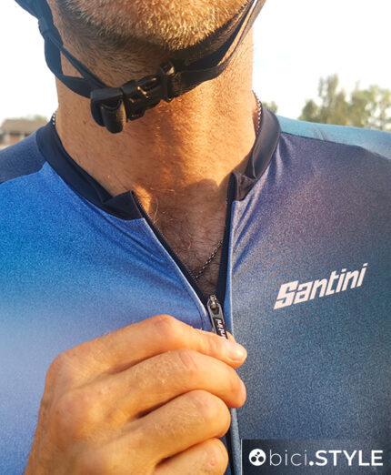 La sudorazione non deve essere fermata, ma può essere assecondata nel modo adeguato, con benifici che si riflettono sulla termoregolazionne corporea. E’ possibile fare questo tramite un tessuto? Si, perché il potere traspirante è un soggetto della tecnologia Polartec (Delta e Power Stretch), utilizzata per capi concettualmente leggeri e dedicati alla stagione calda. Il tessuto Delta (e la sua costruzione) facilita la veicolazione del sudore e del vapore verso l’esterno del capo. Significa che l’indumento non si bagna, non si inzuppa e non è soggetto a sbalzi repentini di temperatura. Non si raffredda in modo repentino, non si scalda velocemente. Il particolare abbinamento dei tessuti dei capi Santini e la loro struttura, fungono come un sistema di termoregolazione. Quest’ultima è una caratteristica importantissima quando, non si sacrifica l’uscita in bici neppure con temperature elevate.