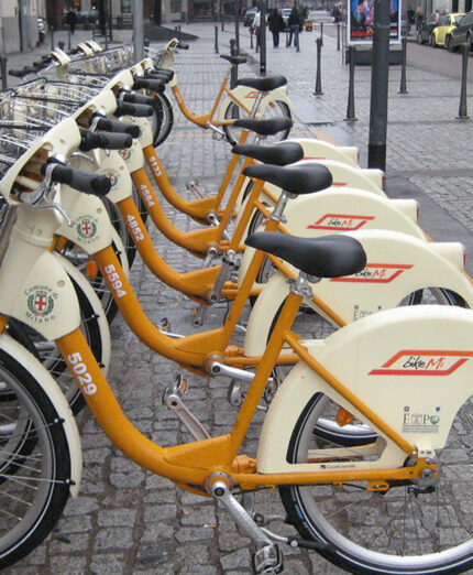 Tantissime e-bike a noleggio e numerose stazioni sparse in città. Questo è BikeMi