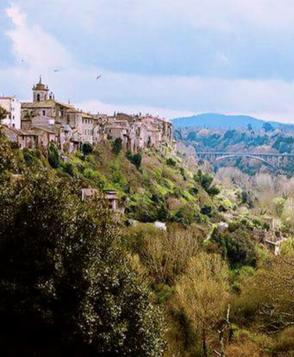 Blera è la seconda grande sosta. Qui bisogna assolutamente visitare sia il centro storico di questo paesino abbarbicato su un costone di tufite scavato dall’acqua. Siamo tra i Vulsini, un antichissimo complesso vulcanico, e la Tuscia. Preso un caffé da queste parti, si riparte, ma per poco. Prima c’è la Necropoli di Pian del Vescovo.