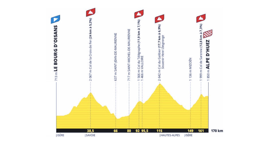Claudio, si va da Bourg d’Oisans all’Alpe d’Huez: in teoria sarebbero i 14 chilometri della classica scalata, ma in realtà c’è un giro da 170 chilometri con Croix de Fer, Télégraphe, Galibier e Col de Sarenne. Al Diablo sarebbe piaciuta una tappa così?