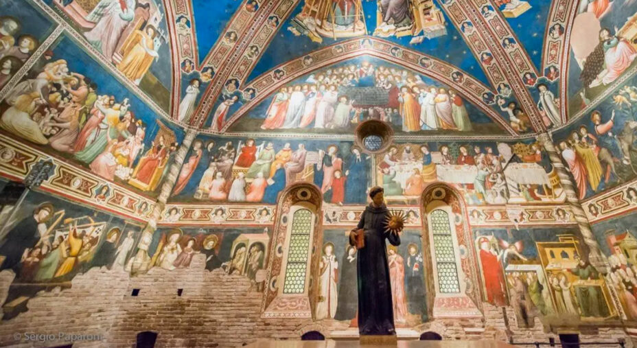 Tra Francesco e la figura di Maria c’era un legame profondissimo, al punto che la scelta di ricostruire la Porziuncola, la terza chiesa restaurata dal Santo Patrono d’Italia, si dovette alla sua predilezione per la madre di Gesù.